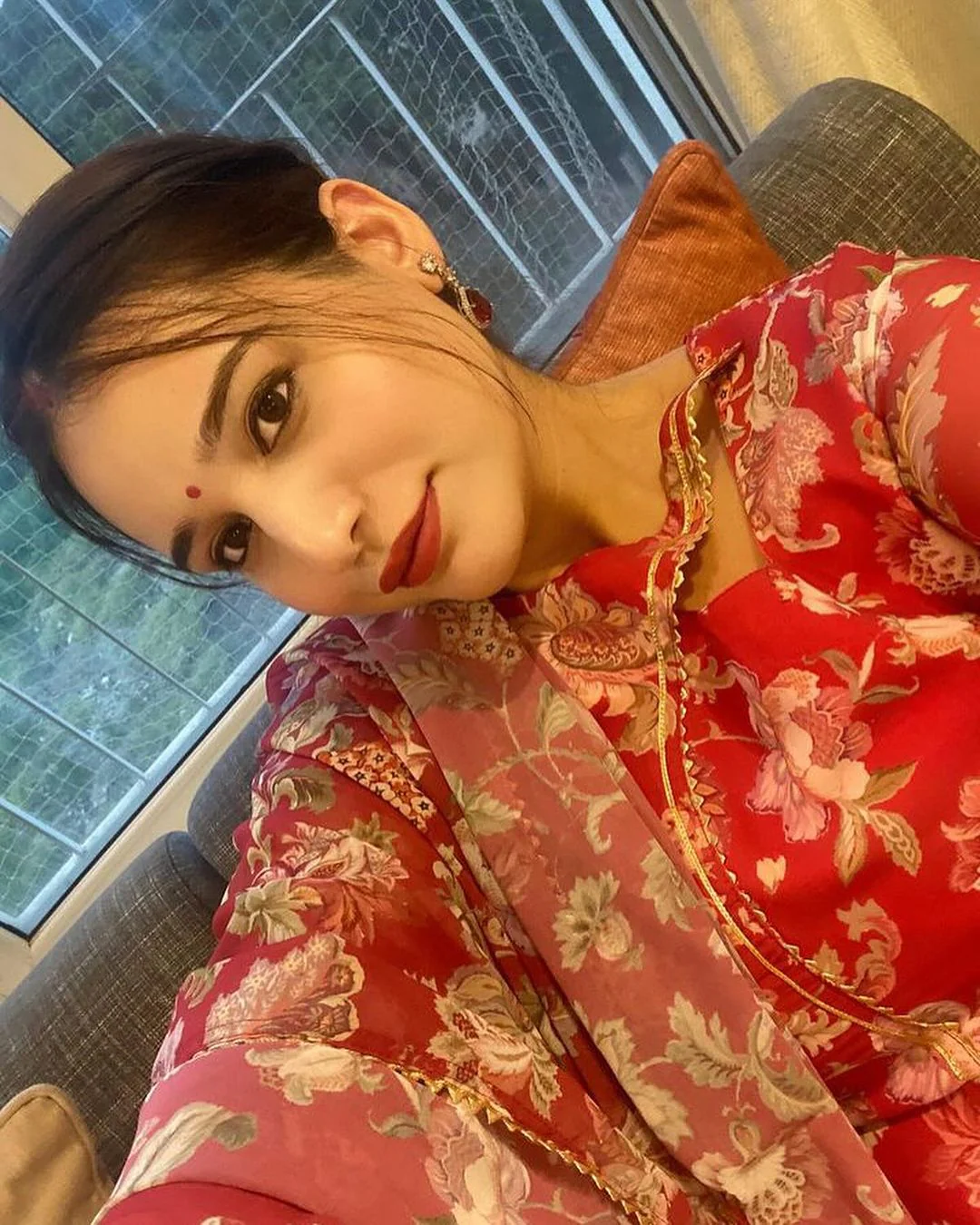 Ritika Sahni In Stylish Neck Design Soft Georgette Floral Pink Color Three Piece Celebrity Anarkali Suit
